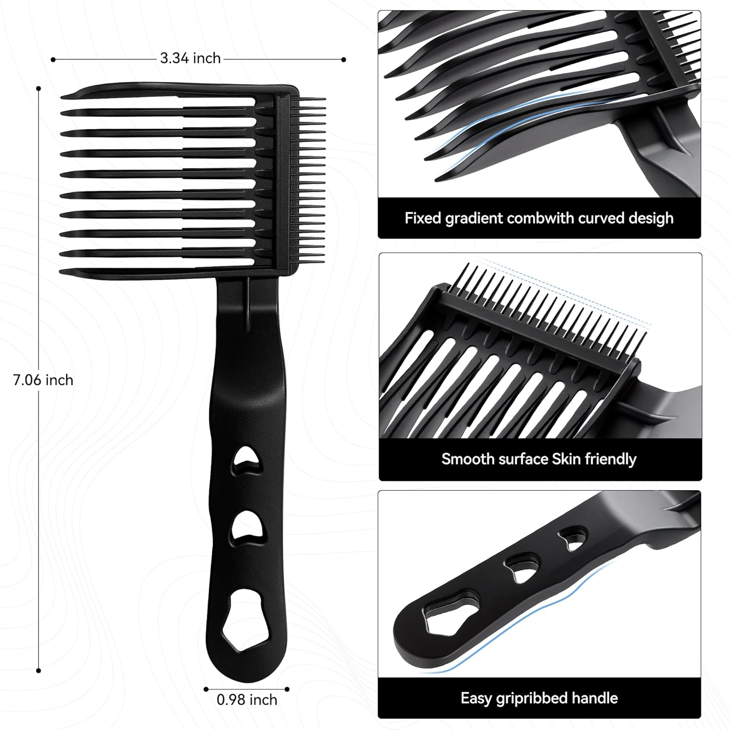 Answer 2: The triangular-arched teeth fit snugly against the scalp, providing better control over hair lengths and ensuring smooth transitions between different styles. This design allows for precise fading and blending, making it easier to achieve professional-looking results at home.